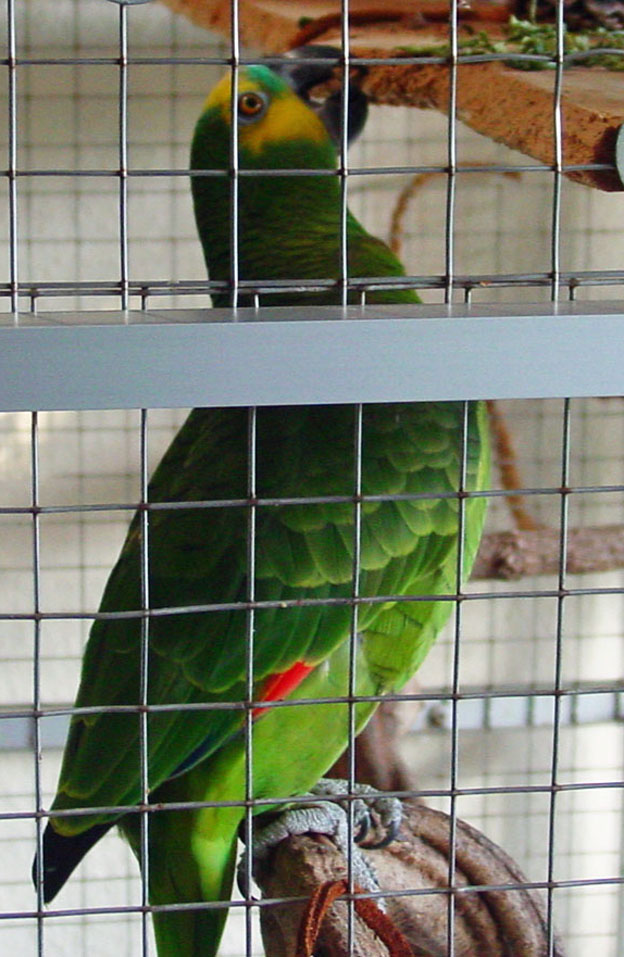 | Die Gluckerei hält sich noch in Grenzen. Mitte Februar haben wir in der Innenvoliere den Zwischenboden entfernt, so dass die Voliere nun wieder bis unten offen ist. Anfangs ging sie nicht mehr so oft nach unten ... doch bereits nach einer Woche hockte sie wieder unten in der zuvor frisch geschredderten Korkrinde. |