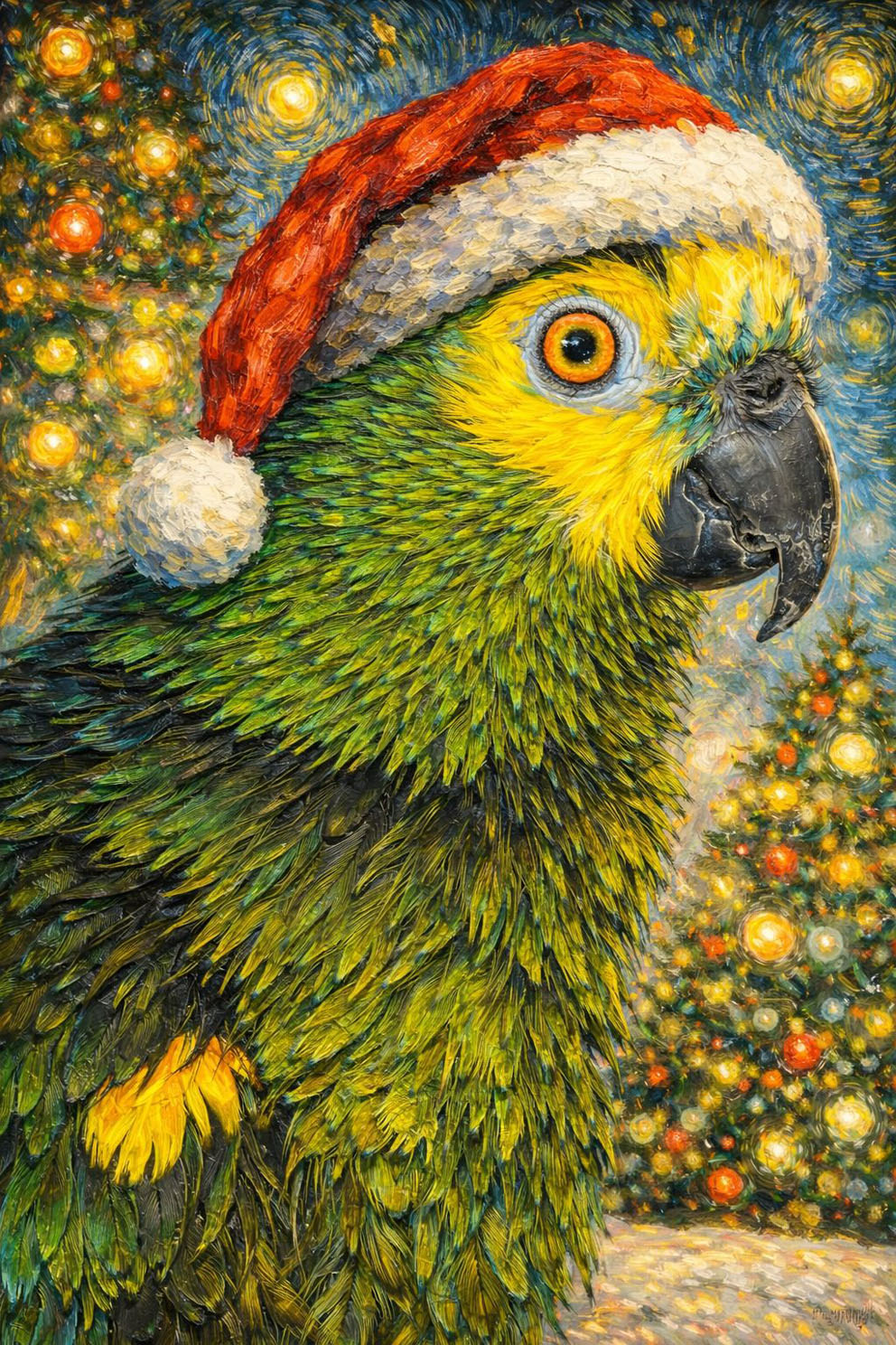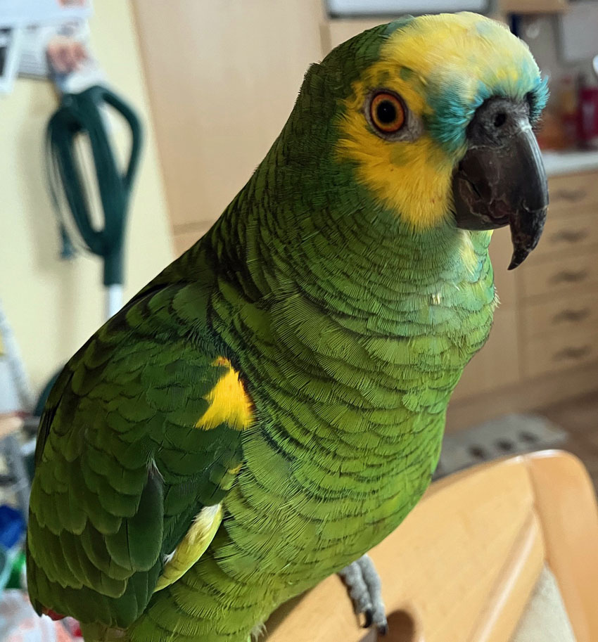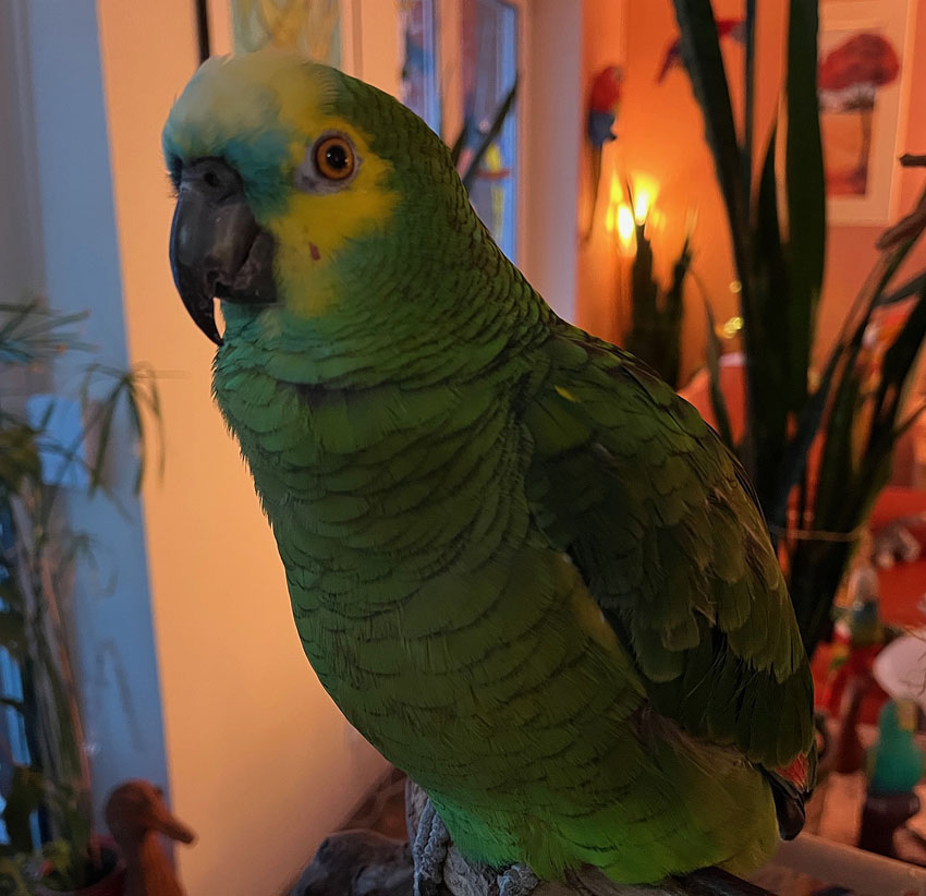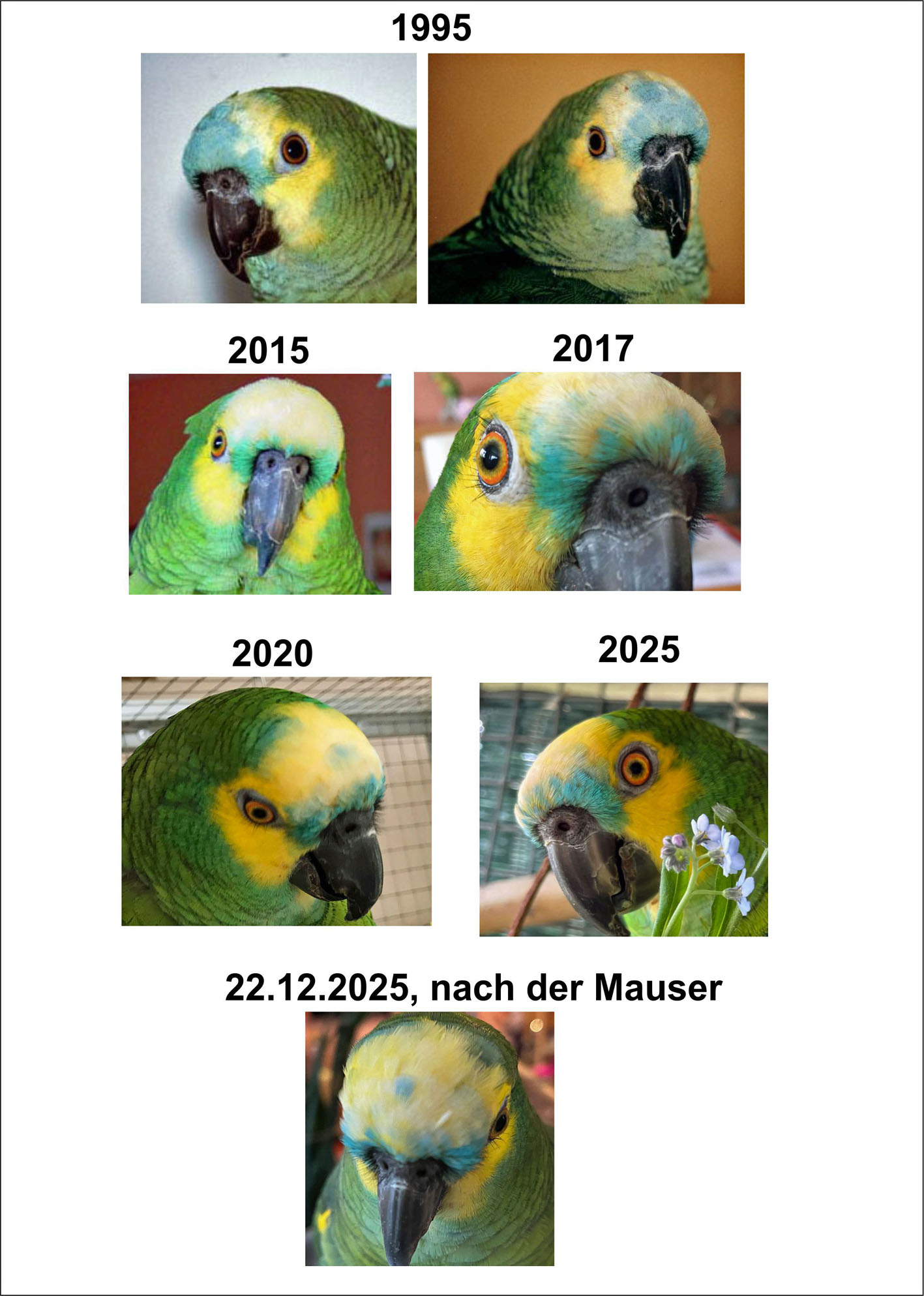 | das Foto wurde von der KI (Chat GPT) erstellt | Hier sieht man Maxis blaue Stirn, die sich im Laufe der Jahre nach der Mauserzeit immer wieder verändert hat |