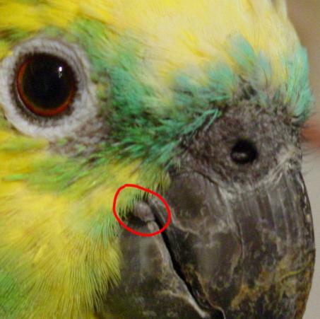 Coco hat so eine kleine Stelle (Wucherung?) im Schnabelwinkel, also an der Haut zwischen Ober- und Unterschnabel. Bei der Gelegenheit wollte ich dann auch gleich mal Schnabel/Nase/Füße vom Doc anschauen lassen. Diese kleine Wucherung stellte sich als harmlos heraus, es könnte sich evtl. um einen Vitamin-A-Mangel handeln.