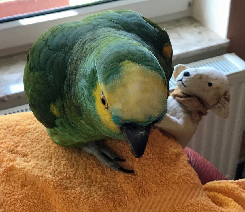 03.08.2019 Maxi mausert nun endlich!!! Überall liegen Daunen und kleinere Federchen herum. Trotzdem guckt sie noch gern in dunkle Ecken, aber ich glaube (hoffe es), ein TA-Besuch bleibt uns wegen Legedarm diesmal erspart. Heut Mittag gab mal wieder Milchreis mit Apfelmus. Sie war wie ausgehungert, nun hockt sie in ihrer Voliere, ist schläfrig und macht Schnabelknirschen. |