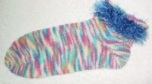Hatte nie zuvor versucht, Socken zu stricken, aber mich dann einfach mal hingesetzt und genau nach Anleitung gestrickt. Da es gleich auf Anhieb funktionierte und so viel Spaß machte, MUSSTE ich einfach weitermachen. Zuerst probierte ich die einfache Käppchenferse, später dann auch die Herzchenferse und die verkürzte oder sogenannte Bumerangferse, die mir am besten gefällt und meiner Meinung nach auch am besten passt. |